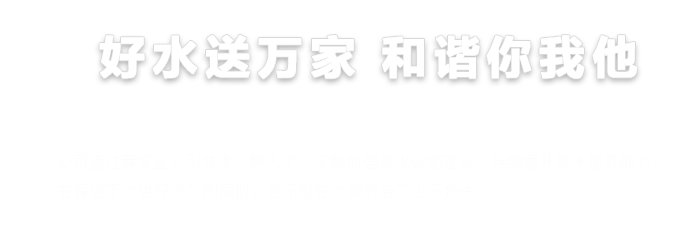 公司作為公益類供水企業(yè),推進(jìn)國企改革的責(zé)任落實(shí),多措并舉提升改革成效,增強(qiáng)國有經(jīng)濟(jì)的競爭力和抗風(fēng)險(xiǎn)能力。公司以“保障城市優(yōu)質(zhì)供水?;保證供水誠信服務(wù)為人民?”為宗旨,以“安全供水、供安全水”為服務(wù)民生理念。